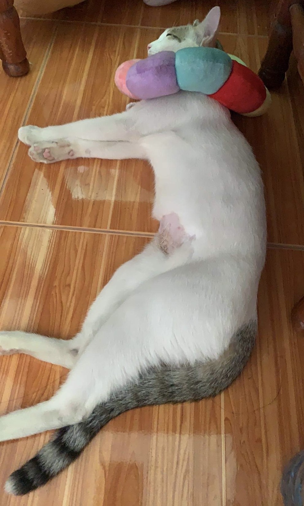 หลังการผ่าตัด น้องไม่มีอาการติดสัดเลย แต่ชอบออกไปเล่นนอกบ้านเหมือนเดิม เพียงแต่ไม่ไปไหนไกล นอนเก่งขึ้น หยอกเก่งขึ้น ทาสแมวยอมถวายหัว 555 น้องน่ารักขึ้น