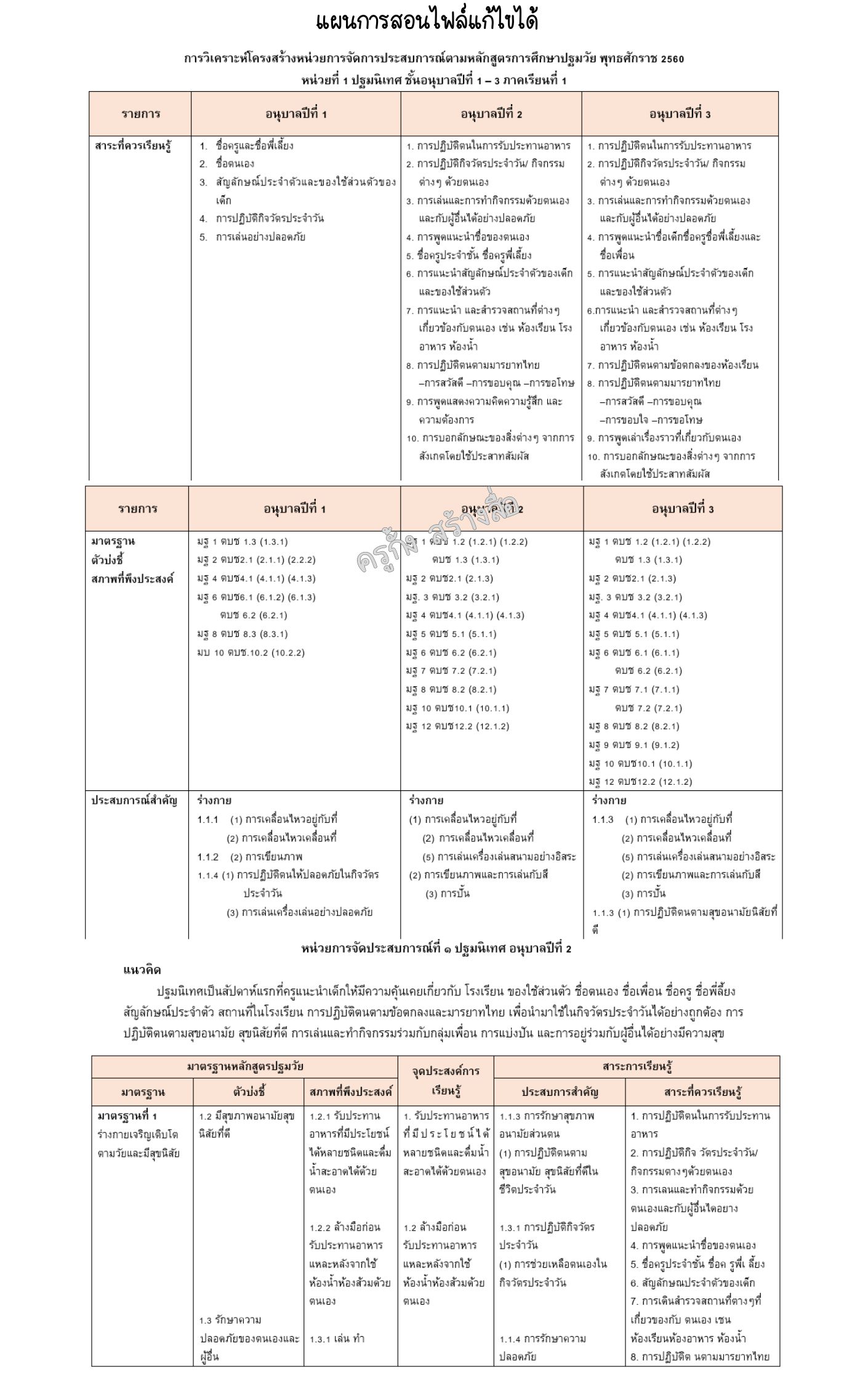 แผนการสอนสำหรับคุณครูอนุบาล มีเนื้อหาที่ครอบคลุมทั้งด้านวิชาการและด้านทักษะชีวิต เนื้อหาวิชาการสอดคล้องกับหลักสูตรแกนกลางการศึกษาขั้นพื้นฐาน ด้านการทักษะชีวิตเน้นการพัฒนาทักษะต่างๆ ที่จำเป็นสำหรับเด็กปฐมวัย เช่น ทักษะด้านร่างกาย ทักษะด้านอารมณ์ ทักษะด้านสังคม และทักษะด้านสติปัญญา